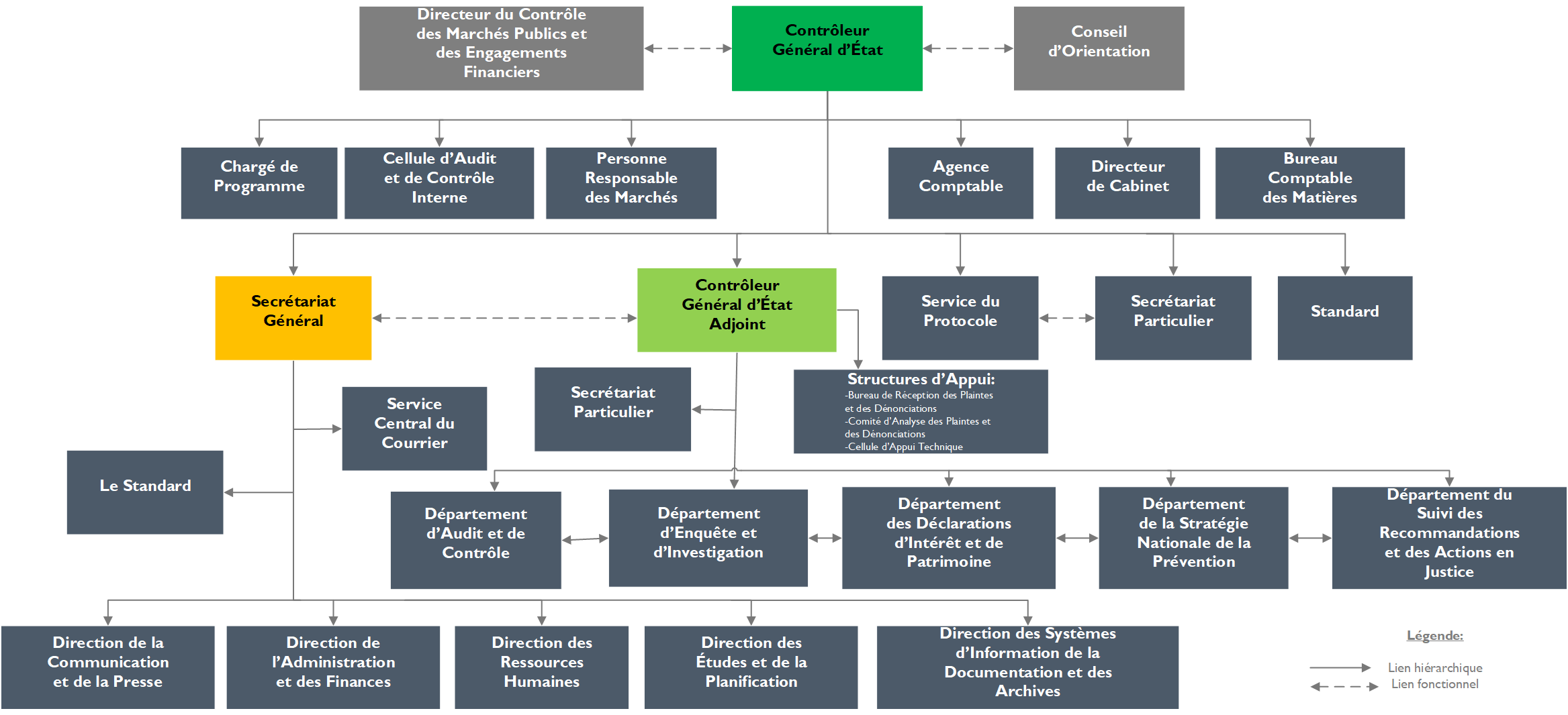 - le Cabinet du Contrôleur Général d’Etat ;